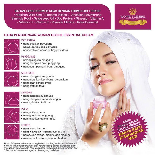 Thanks a lot Reply Delete. WOMEN DESIRE ESSENTIAL CREAM WDEC HARGA MURAH Set Original Bukan Fake Testimoni Review Kesan Kelulusan KKM Promosi Online Malaysia. Women Desiree Triple Advance quantity.